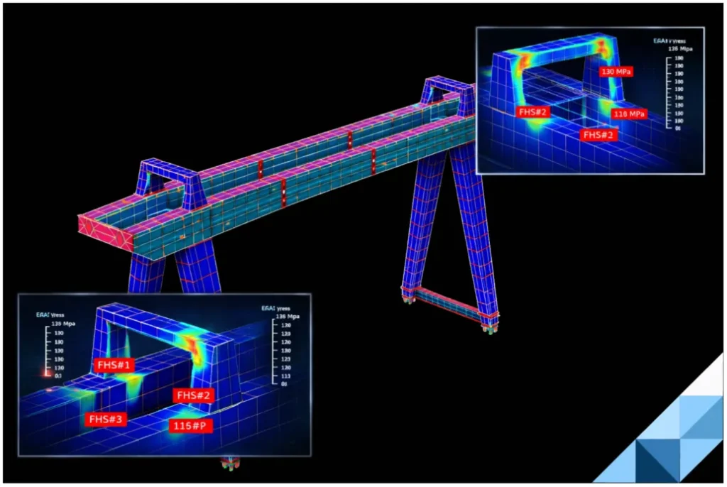 Finite-element and conventional analysis of structural loads to safeguard integrity under dynamic operational conditions.